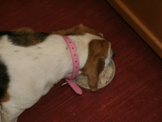 Susie celebrated her 10th Birthday earlier this month!! She was very excited about her big day. She had some chicken breast and rice for dinner. So did Kitty... Bryan didn't want her to feel left out.